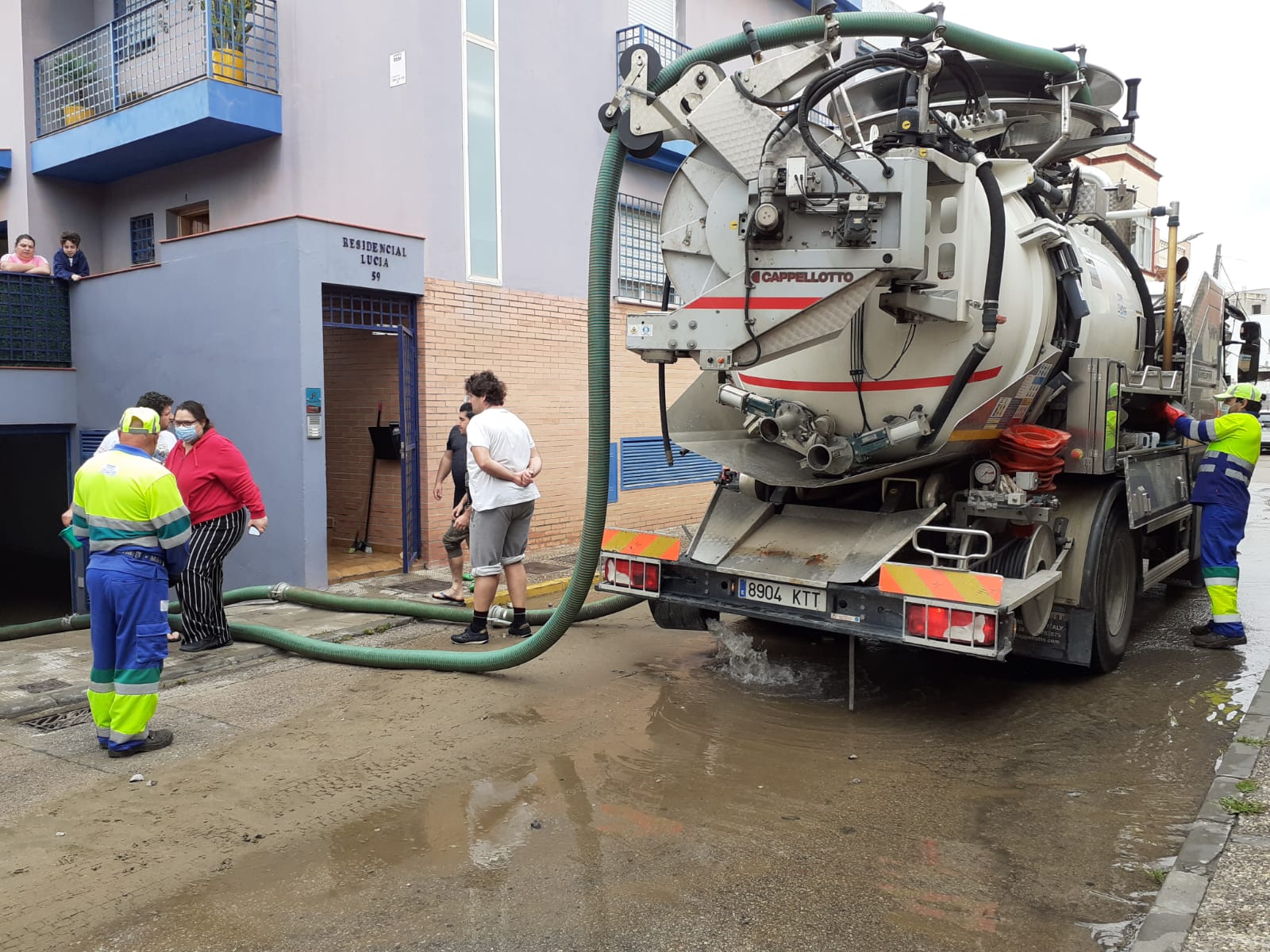 En este momento, 3 camiones de la empresa están trabajando en la zona achicando el agua que ha entrado en los garajes y se está descubriendo la zanja en la zona de la rotura para poder iniciar su reparación, que, dada la envergadura de la misma, se prevé que se pueda alargar hasta última hora de la tarde de hoy.