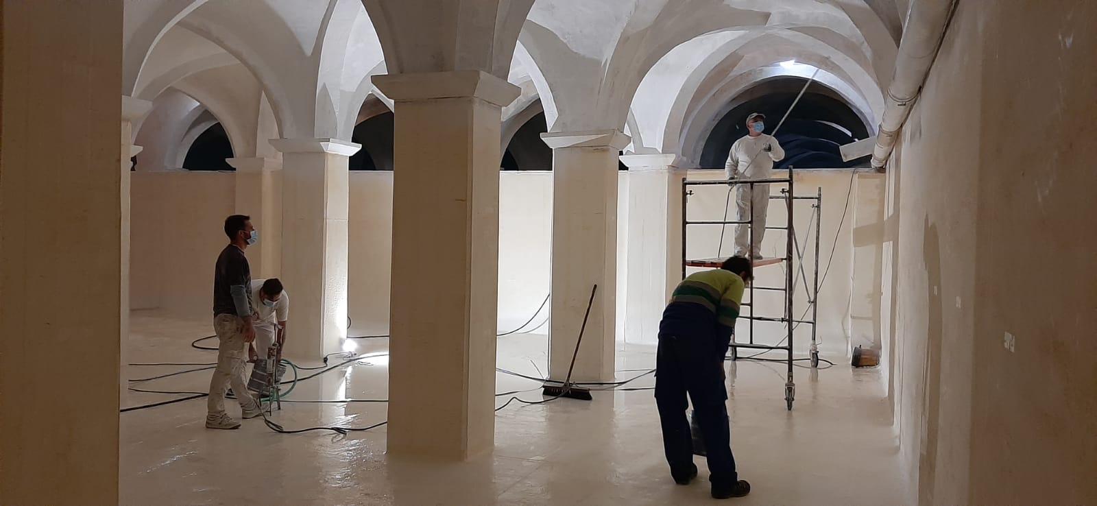 En esta ocasión se han realizado diversas actuaciones complementarias a la limpieza y desinfección, destacando entre ellas el pintado de la cúpula del depósito en su parte interior, la sustitución de las 2 válvulas de llenado de los vasos, la instalación de un nuevo contador a la entrada del depósito y la actualización del sistema de cloración.