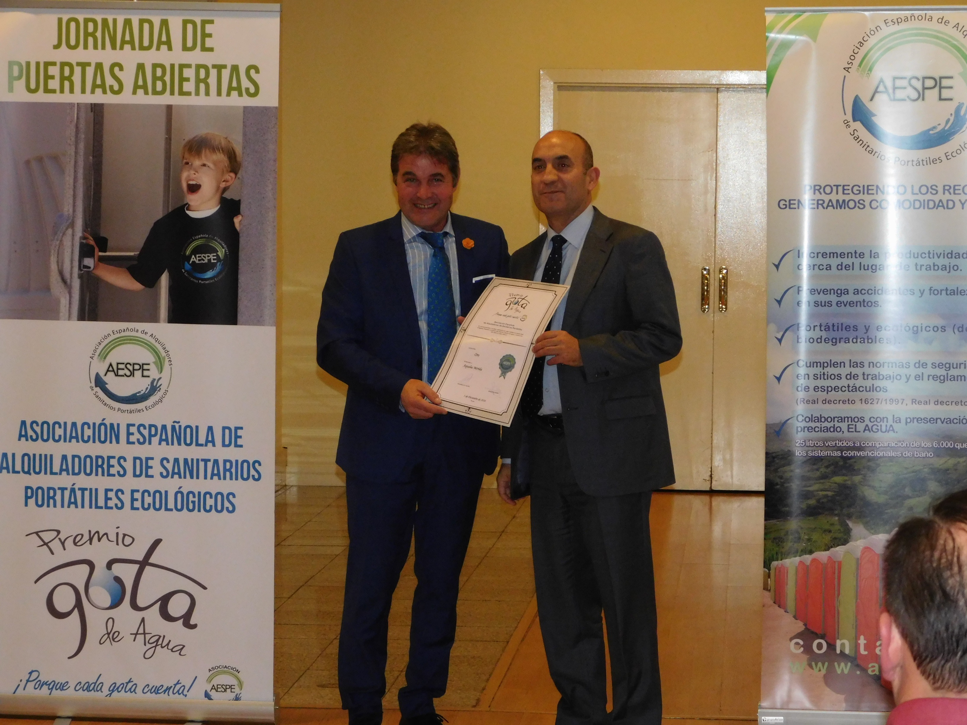 La labor que Aqualia desarrolla en Mérida como empresa gestora del Servicio Municipal de Agua ha sido reconocida con la Gota de Oro, galardón que AESPE, la Asociación Española de Alquiladores de Sanitarios Portátiles Ecológicos, acaba de entregar en un evento celebrado en Madrid.