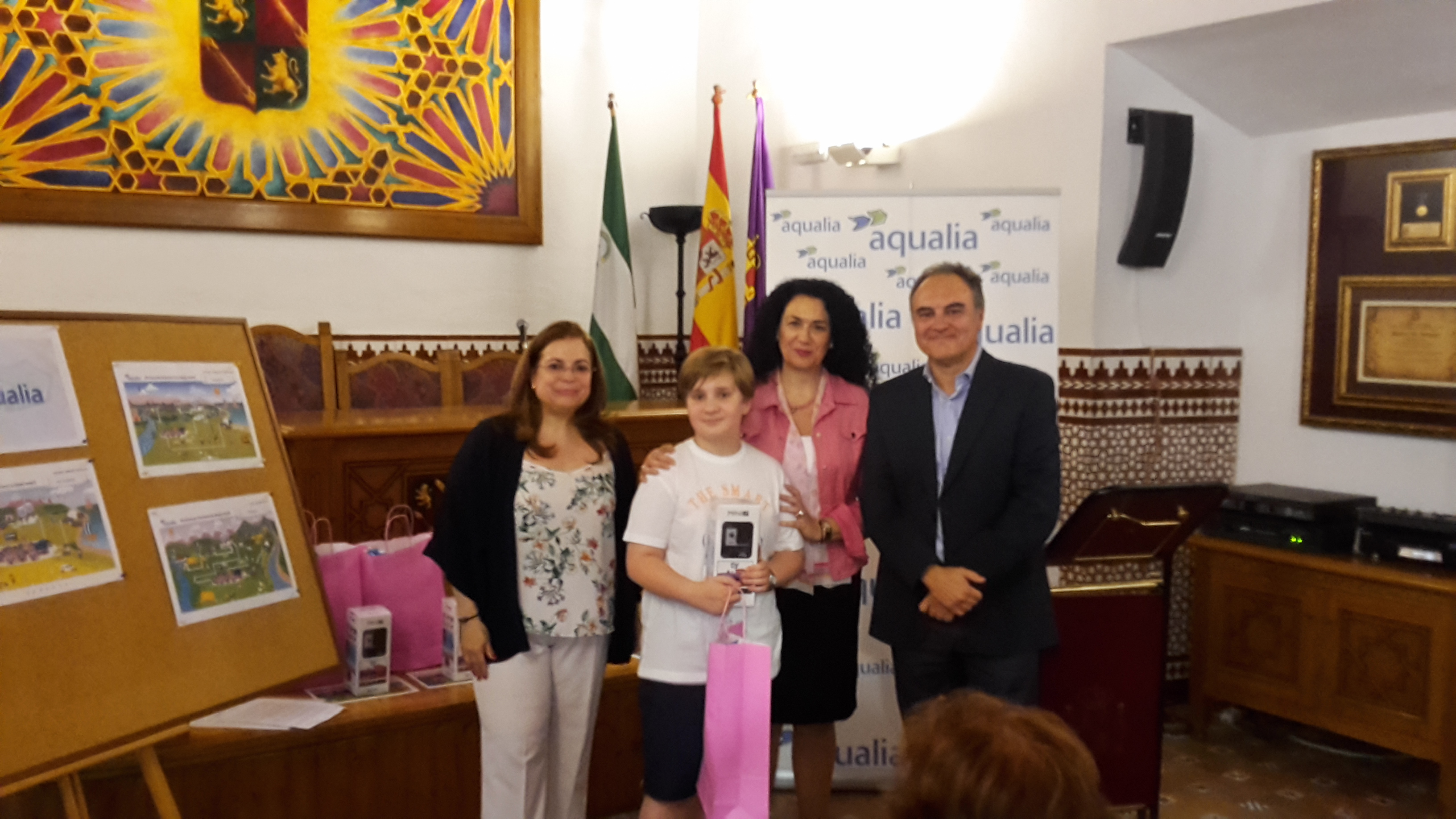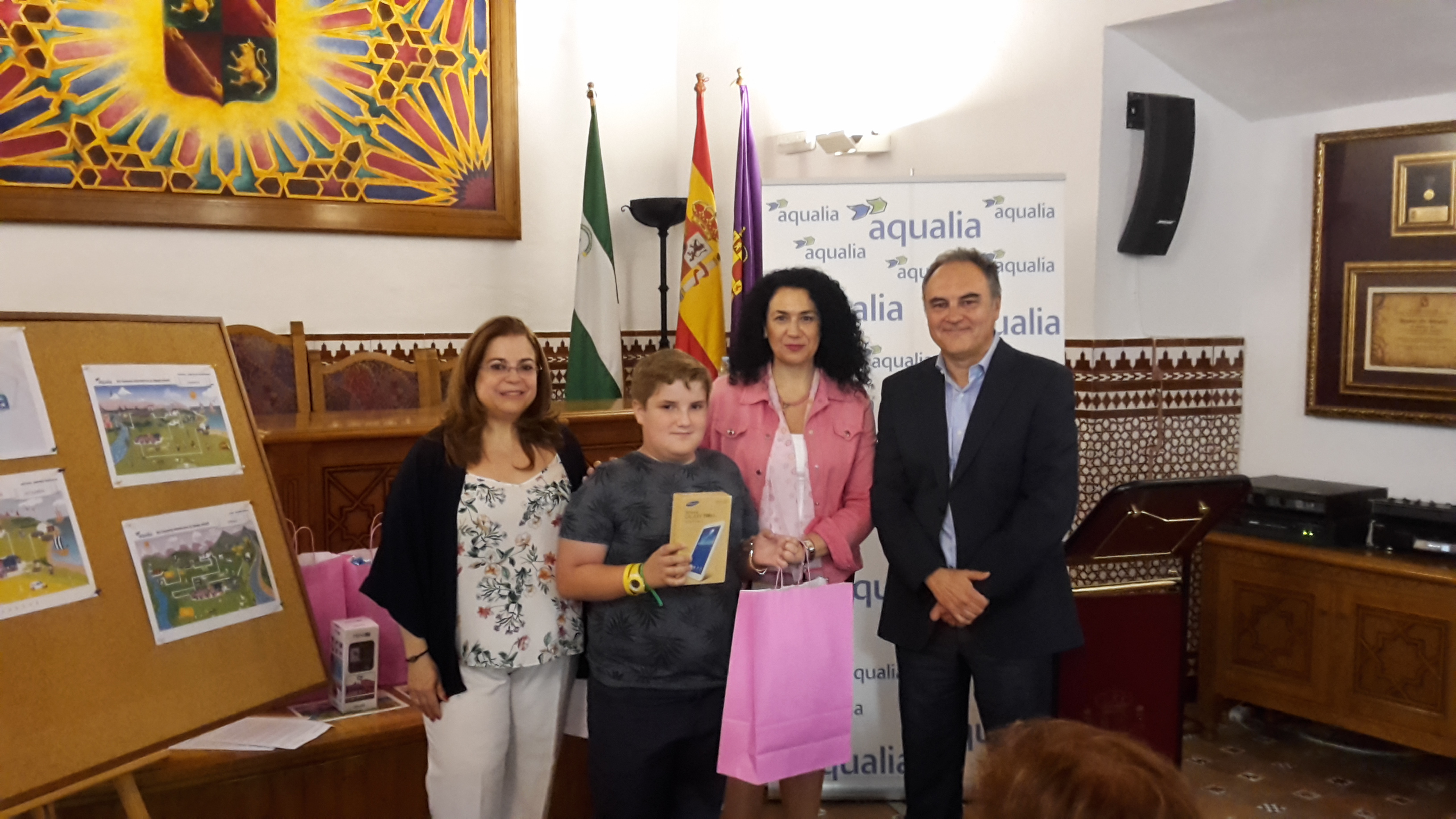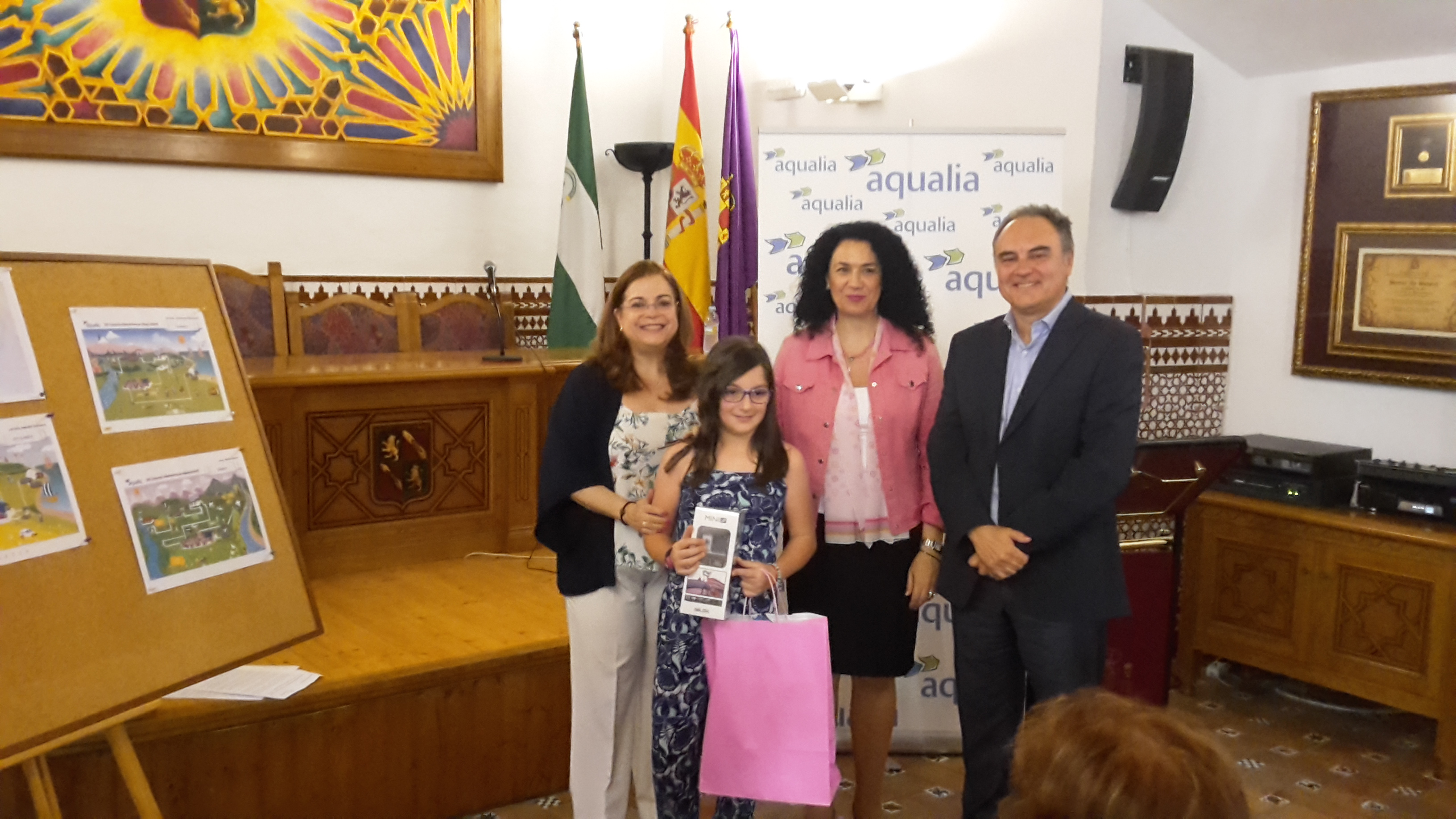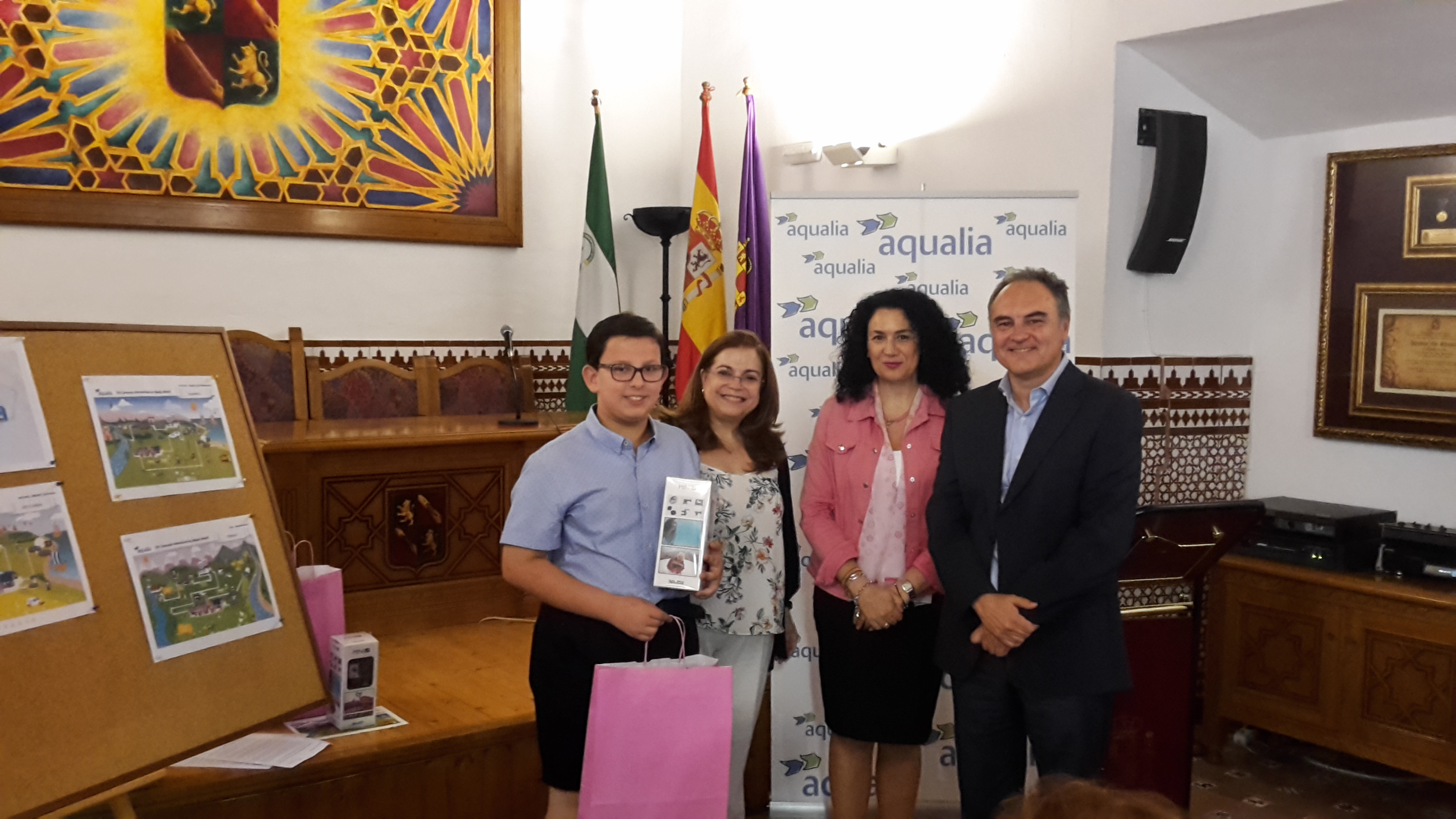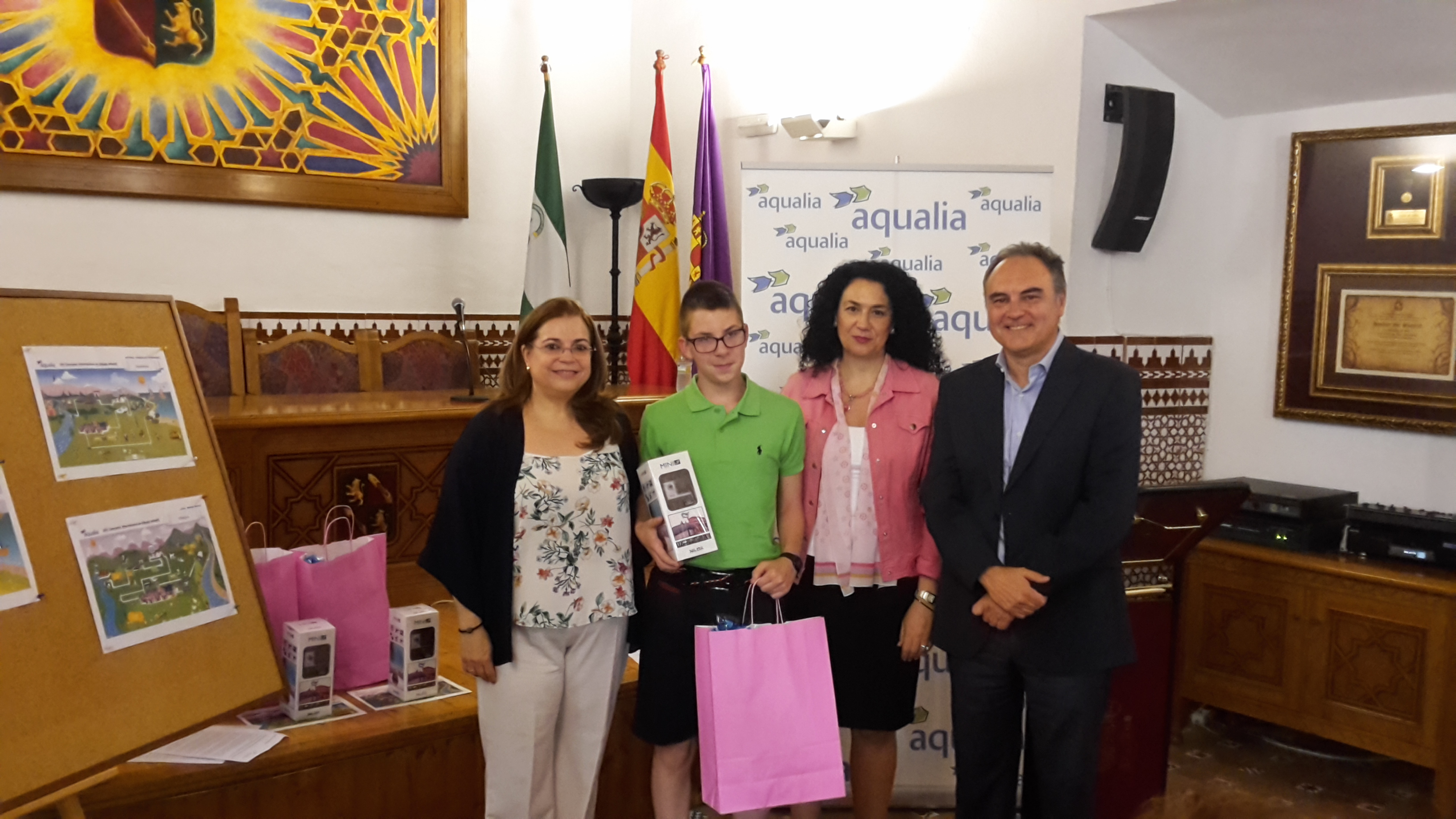 Cinco jóvenes alumnos de Jaén han recibido un premio de manos de la concejala de Educación, Mª Isabel Azañón, el Gerente de Aqualia en la ciudad, Juan Carlos Piñar, y la jefa de Gestión de Clientes, Anabel Ruiz, por sus trabajos presentados en el XIV Concurso Internacional de Dibujo Infantil, certamen que anualmente convoca Aqualia con motivo del Día Mundial del Agua, y en el que en esta edición, bajo el título “El ciclo del agua para valientes”, han participado miles de alumnos de 3º y 4º de Primaria de los colegios de España y Portugal en los que Aqualia presta servicio.