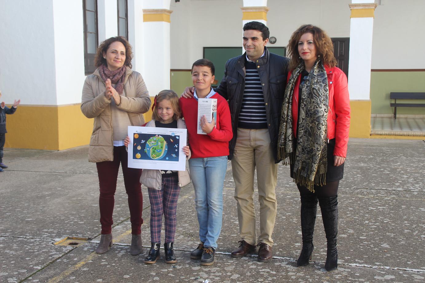 Sus dibujos han resultado finalistas y el alcalde, Jorge Gallardo, les ha entregado su premio en su colegio
