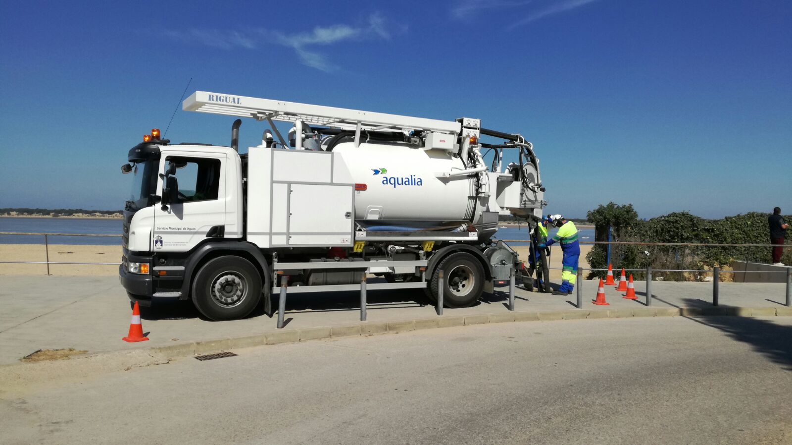 El Servicio Municipal de Aguas de Sanlúcar, gestionado por Aqualia, ha adquirido un nuevo camión de alcantarillado de 18 toneladas valorado en más de 200.000 €, que trabajará a diario en las labores de limpieza programada y mantenimiento preventivo de los 186 km de las redes de alcantarillado y pluviales de la ciudad.