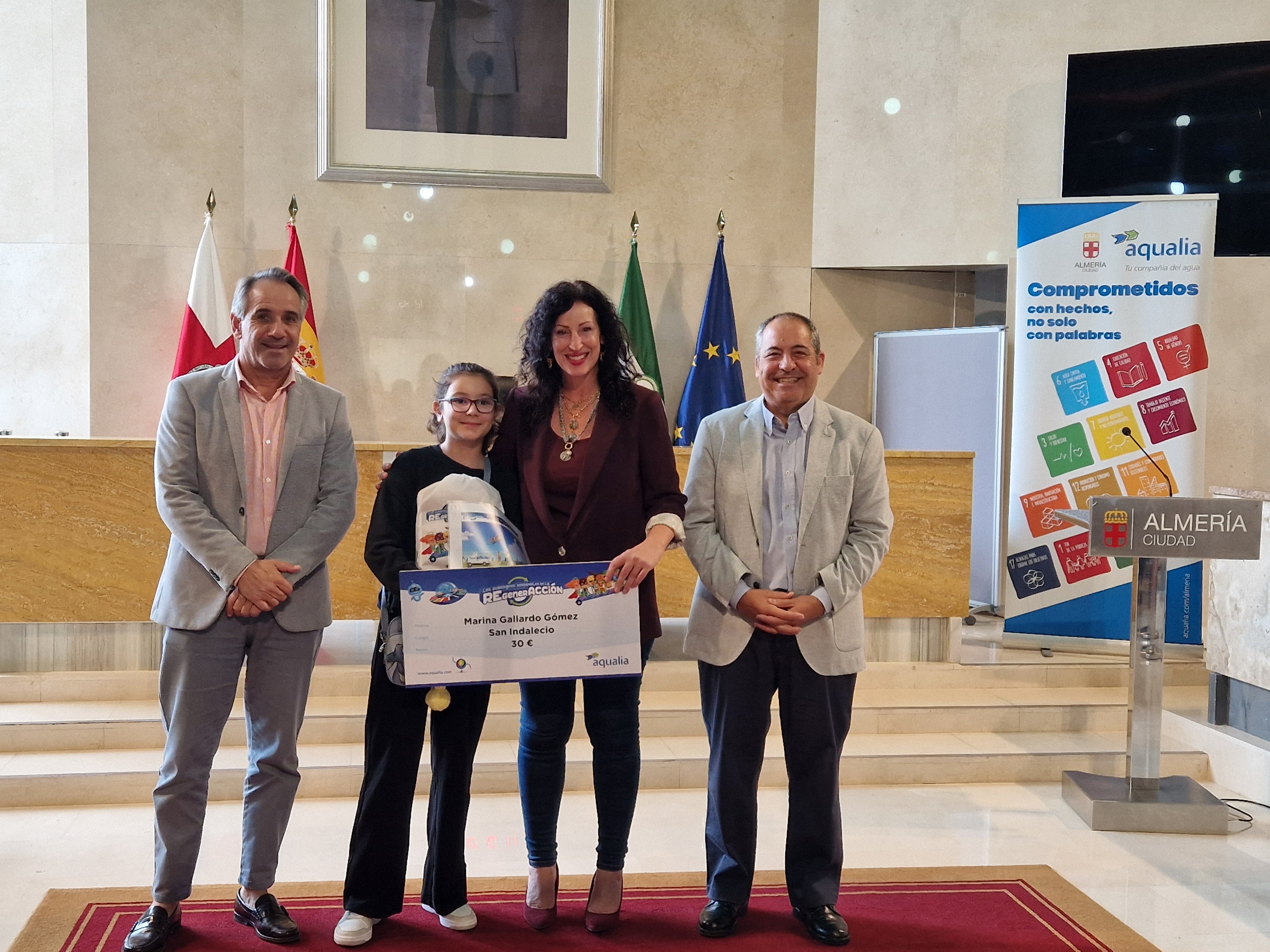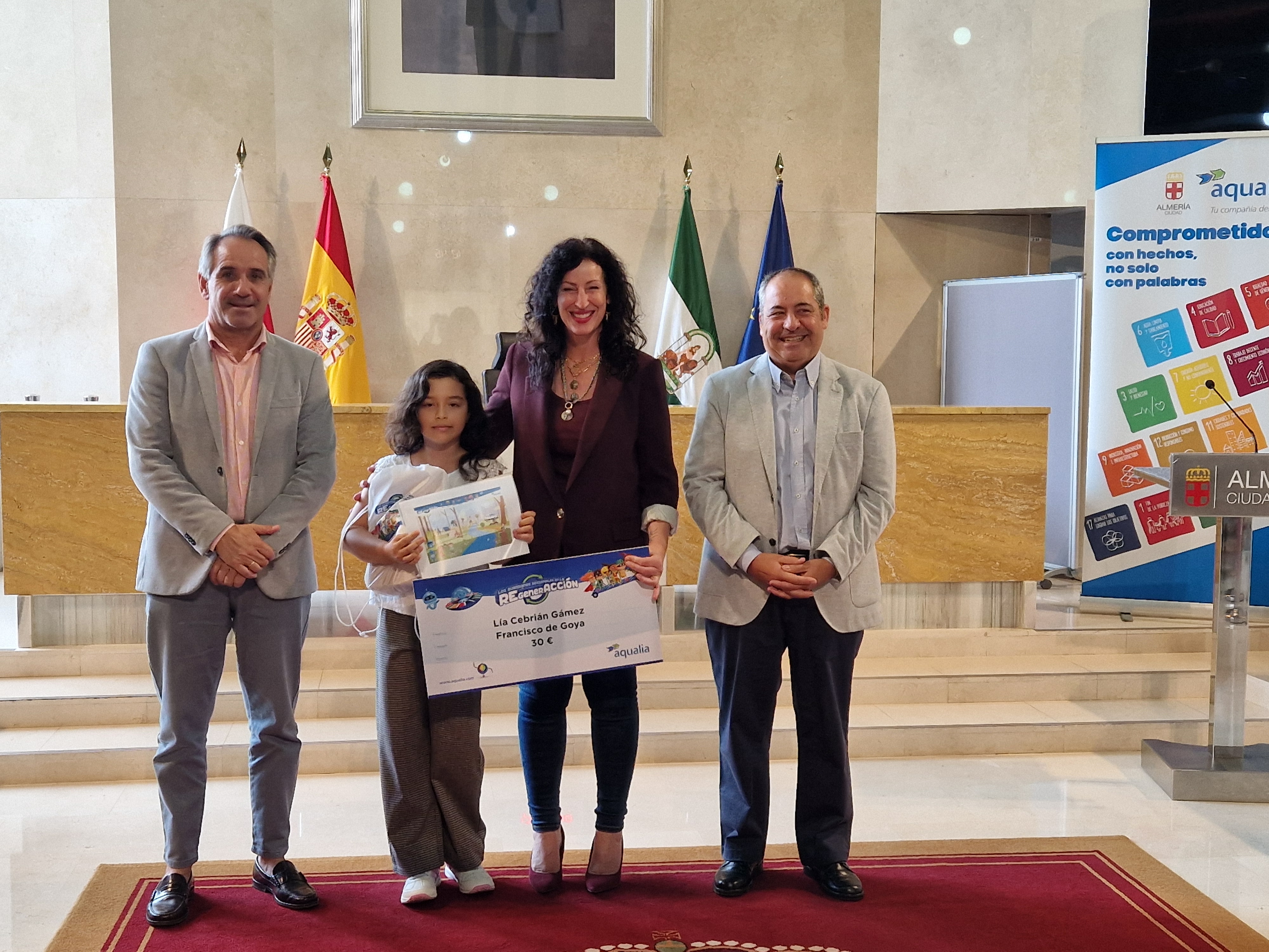 Aqualia, en colaboración con el Ayuntamiento de Almería, ha hecho entrega de sus premios a los finalistas del Concurso Digital Educativo Infantil que este año se con-vocó bajo el tema “Misión RegenerACCIÓN”, en torno a la web www.aqualiayods6.com. Pudieron participar los niños y niñas que estuvieran cursando 3º y 4º de Primaria de los colegios de Almería, a los que se enviaron posters, comics y las bases con las indicaciones necesarias para participar.